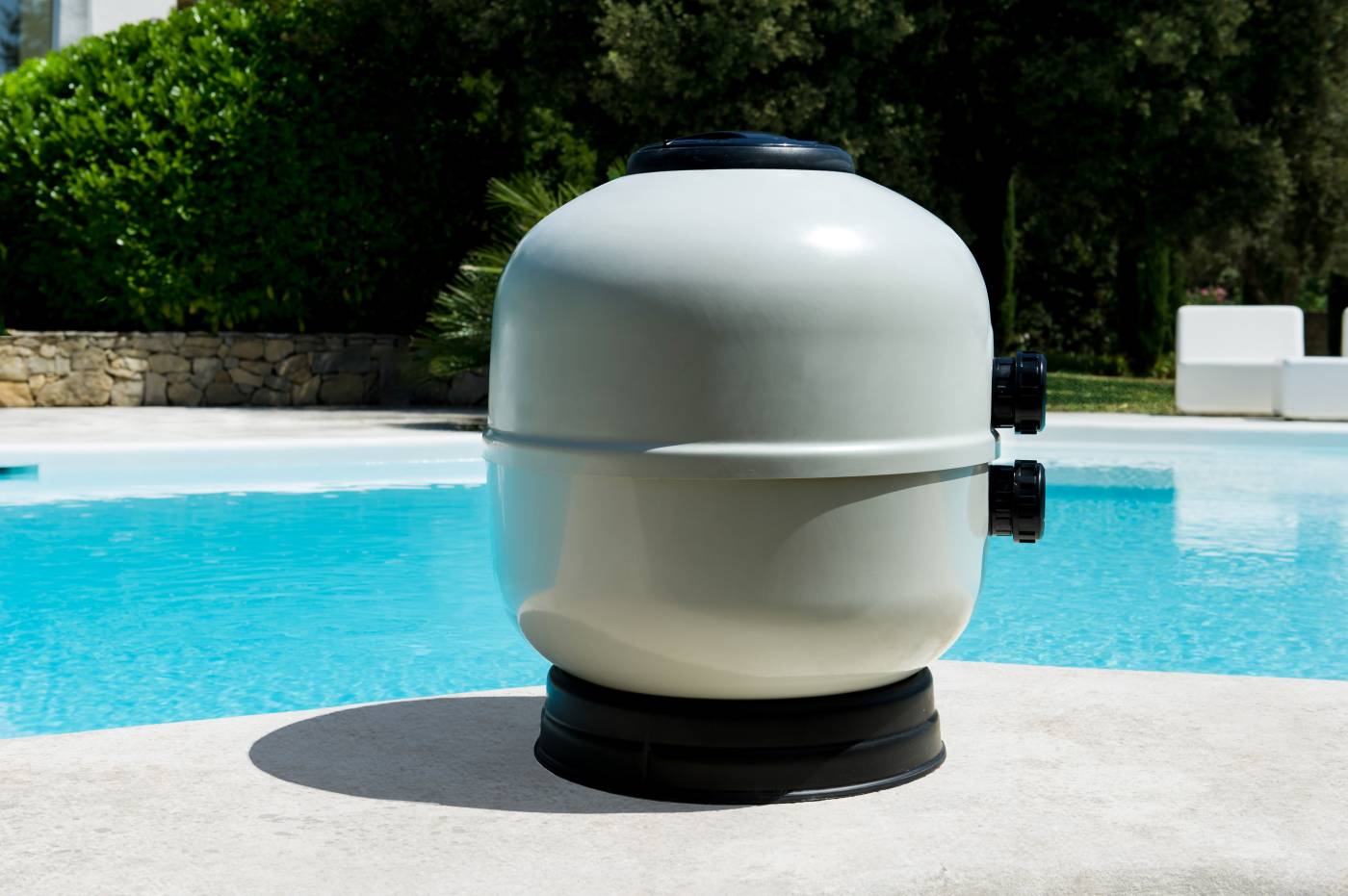 A szűrőtartály anyaga üvegszállal erősített poliészter, szürke színű. Alaplapja és fedele PP. A tető csavarkötés nélküli, zárása gyors, egyszerű. A berendezés nyomásmérő órával felszerelt. Maximális üzemi nyomás: 2,5 kg/cm2. Szűrési teljesítménye 50 m3/h/m2. Kiváló ár-érték arányú szűrőtartály 3 év garanciával.
