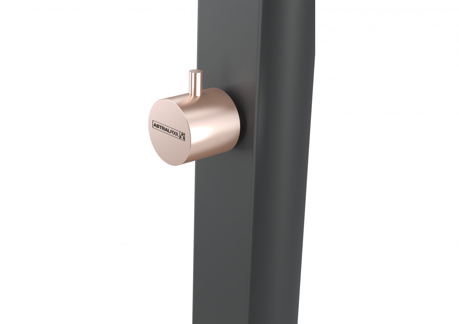 Elegáns kialakításával az AstralPool Chrome zuhany kitűnik modern stílusával, széles szín- és anyagválasztékával. Élvezze a pihentető élményt minden úszás előtt és után. MŰSZAKI ADATOK: • AISI-304-L rozsdamentes acél cső és alumínium keret. • Fémes felületek és színek széles választéka. • Vízkőmentes zuhanyfej és esőhatás. • Hideg-meleg vizes keverőcsap. • Lábmosó csap. • Könnyű karbantarthatóság: vízelvezető a zuhany téli leürítéséhez a sérülések és a kopás elkerülése érdekében. • A hátsó bemenet tömlőcsatlakozással kompatibilis. 1/2" Méretek: Magasság: 2100mm, Test: ?150mm, Zuhanyfej: ?200mm