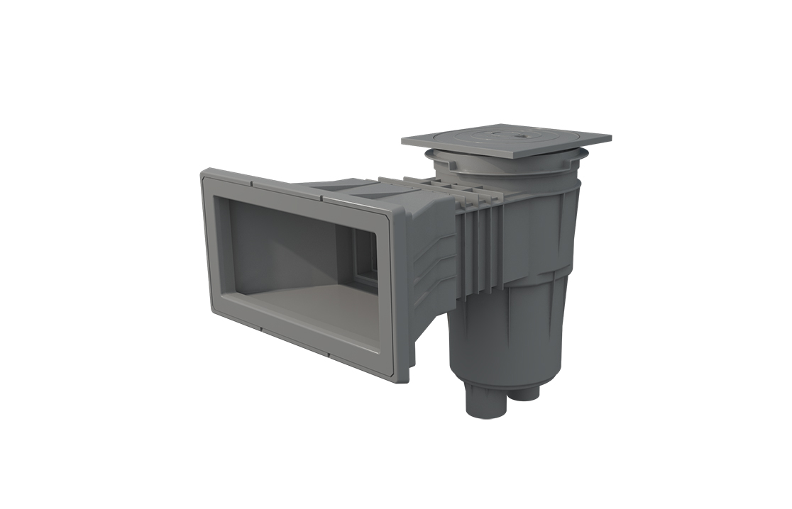A Szkimmer nem süllyesztett részei UV sugárzásnak ellenálló, anyaguk fehér ABS műanyag. Az átfolyás szabályozása billenő ajtóval történik. Alsó szívó csatlakozók: 1 1?2” belső, ill. 2” KM. A túlfolyó csonk 32 mm. Tartozék a szűrőkosár és a vákuumtárcsa. Javasolt áramlás mennyiség 7.5 m3/h. Ajánlott 25 m2-es vízfelületenként 1 szkimmer beszerelése. Állítható tisztító tető magasság, amelynek segítségével a tető egy szintbe hozható a burkolat magasságával.